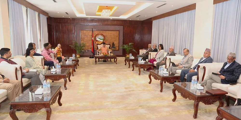 आजको बैठकमा कांग्रेस सभापति शेरबहादुर देउवा, गृहमन्त्री रमेश लेखक, एमालेका वरिष्ठ उपाध्यक्ष ईश्वर पोखरेल, महासचिव शंकर पोखरेल, जनता समाजवादी पार्टीका सहअध्यक्ष रेणुकुमारी यादव, जनता समाजवादी पार्टी नेपालका उपाध्यक्ष राजकिशोर यादव, लोकतान्त्रिक समाजवादी पार्टीका अध्यक्ष महन्थ ठाकुर, नागरिक उन्मुक्ति पार्टीका अध्यक्ष रञ्जिता श्रेष्ठ र जनमत पार्टीका अध्यक्ष डा.सिके राउत लगायतका नेता सहभागी थिए।