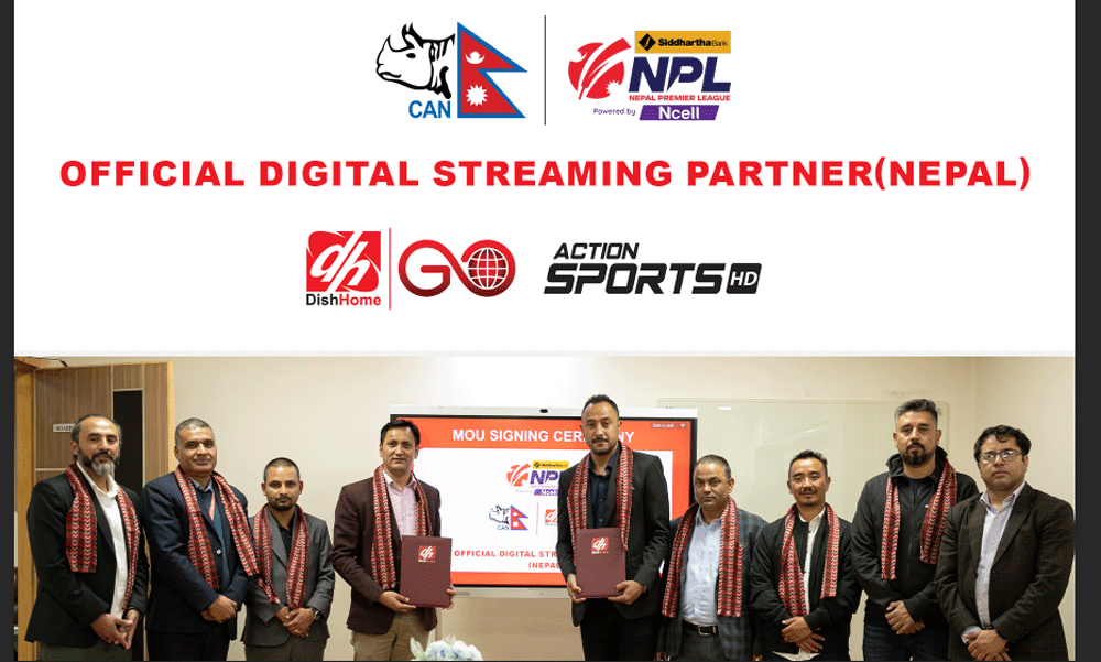 काठमाडौं । नेपाल प्रिमियर लिग (एनपीएल) २०२४ को डिजिटल स्ट्रिमिङ अधिकार डिशहोमले प्राप्त गरेको छ। यो साझेदारीअन्तर्गत डिशहोमले नेपालका क्रिकेट प्रेमीहरूलाई एनपीएल २०२४ का सबै म्याचहरू प्रत्यक्ष रूपमा डिशहोम गो एप र एक्सन स्पोर्टस एचडी नामक यूट्यूब च्यानलमा प्रशारण गर्नेछ।