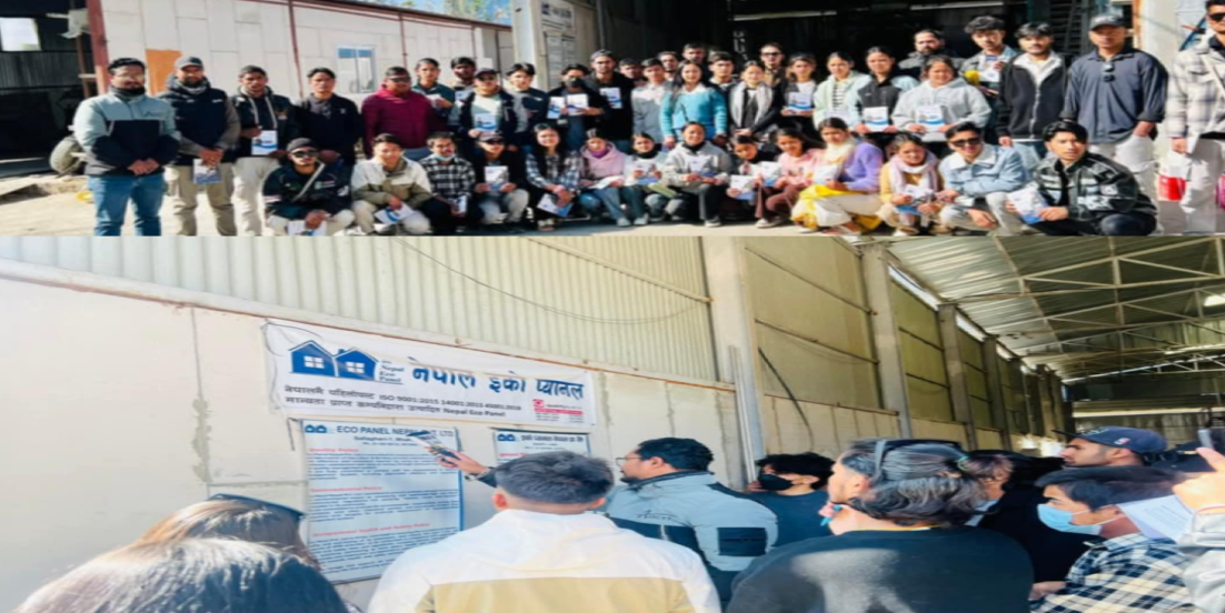 शिक्षालयमा डिप्लोमा इन सिभिलविद्यार्थीलाई प्रयोगात्मक अभ्यासका लागि जुम्लादेखि भक्तपुरको इको प्यानलको कारखानामा लगिएको जानकारी गराए।