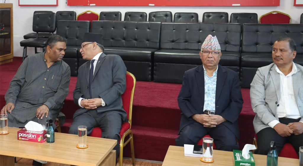 बिहिबार पनि प्रचण्ड र माधव नेपालले सिंहदरबारमा छलफल गरेका थिए। बैठकमा अशोक राई नेतृत्वको जनता समाजवादी पार्टीका नेता राजेन्द्र श्रेष्ठ पनि सहभागी थिए।