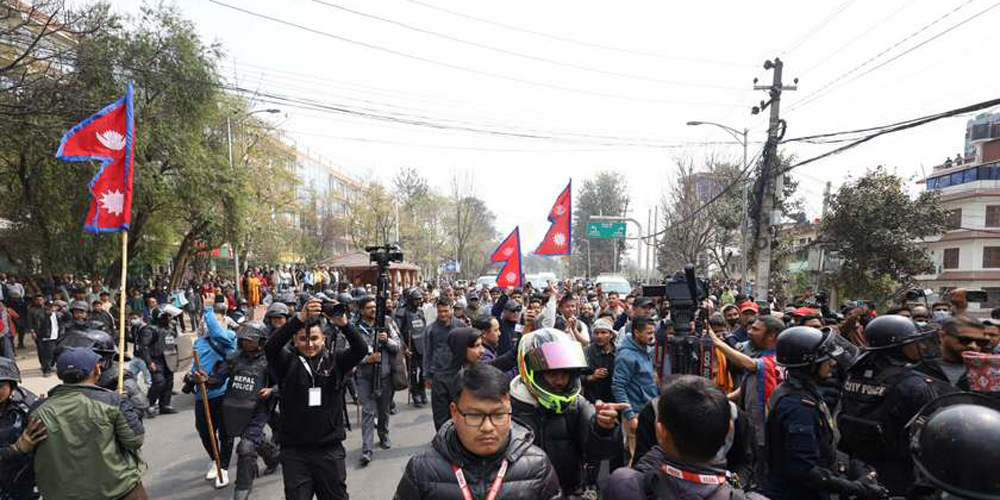 राजावादीको प्रदर्शनले चाबहिल-तीनकुने सडक प्रभावित
