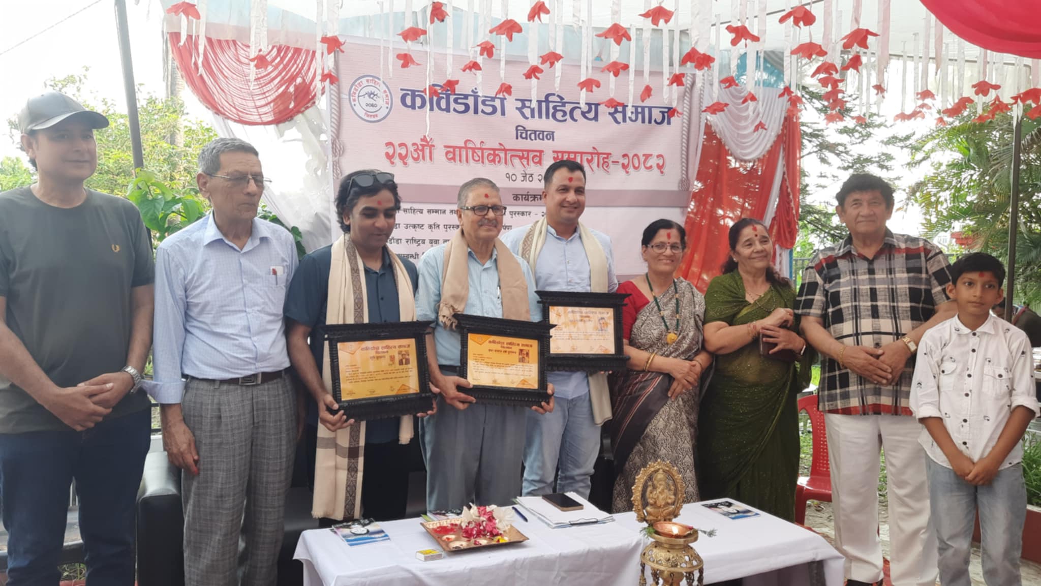 चितवन।कविडाँडा साहित्य समाज चितवनको २२ औँ वार्षिकोत्सव अध्यक्ष कवि एल बी क्षेत्रीको अध्यक्षता एवम् समाजका सचिव युवा गजलकार लेखराम सापकोटाको सञ्चालनमा सम्पन्न भएको छ। सो अवसरमा कविडाँडा कृति पुरस्कार- २०८१ बाट `अलङ्कार इन्द्रेनी´ काव्यका लागि कविवर गोविन्दराज विनोदी, कविडाँडा साहित्य सम्मान तथा देव-खिना स्मृति पुरस्कार – २०८२