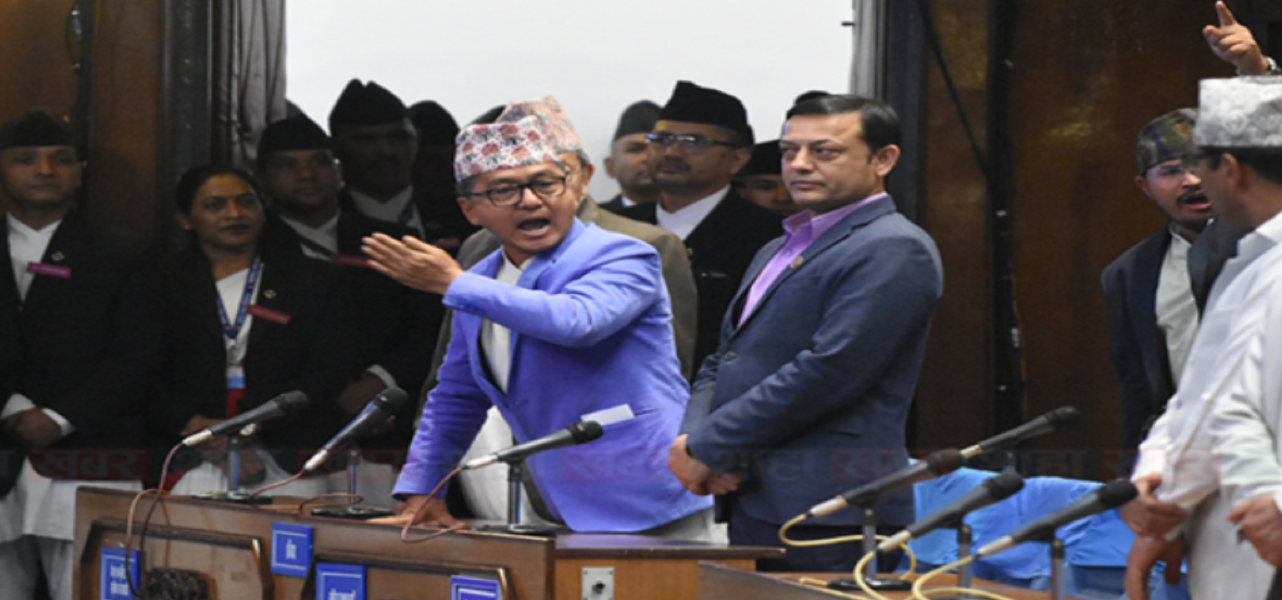 काठमाडौं। राष्ट्रिय प्रजातन्त्र पार्टी (राप्रपा)ले प्रतिनिधि सभा बैठक बहिष्कार गरेको छ। सोमवार बसेको प्रतिनिधिसभाको बैठकमा बोल्दै राप्रपाका अध्यक्ष राजेन्द्र लिङदेनले बैठक बहिष्कार गरेको बताएका हुन्। उनले संसद्मा विरोध जारी राखिरहेको बेला जबरजस्ती संसद अगाडि बढाउनु संसदीय मर्यादाको दृष्टिकोणले उचित नहुने बताए।