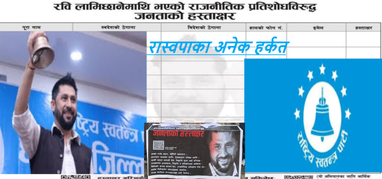 एकजना व्यक्तिको विषयलाई लिएर यस खालको फण्डा मच्चाउने रास्वपाले जनताको हितमा के काम गर्ला ?त्यो बुझ्न कठिन छैन । रवि लामिछानेका समर्थकहरु नभएका होइनन् । देशभर उनका कट्टर समर्थकहरु छन् । यो हस्ताक्षर अभियानमा देशव्यापी सहभागिता पनि चलिरहेको छ।
