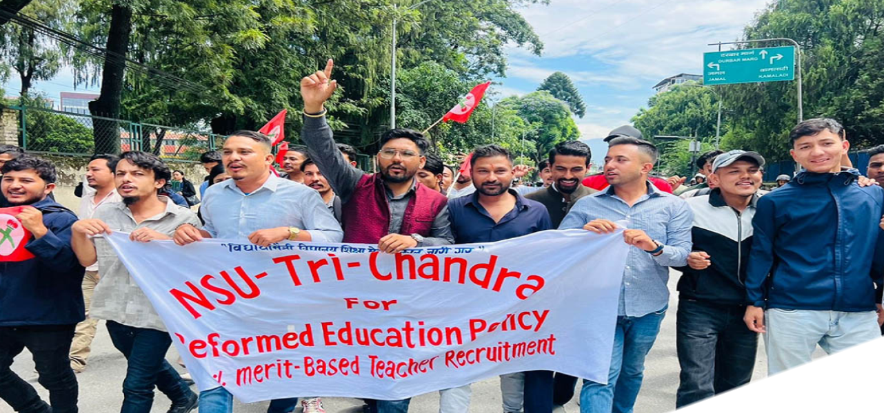 काठमाडौं। नेपाल विद्यार्थी संघ त्रिचन्द्र बहुमुखी क्याम्पस इकाई समितिका अध्यक्ष अमृत बहादुर शाहीको नेतृत्वमा संगठनले सरकारलाई तत्काल विद्यार्थीमैत्री विद्यालय शिक्षा ऐन जारी गर्न र शतप्रतिशत खुला प्रतिस्पर्धाबाट शिक्षकको नियुक्ति गर्न माग गरेको छ।