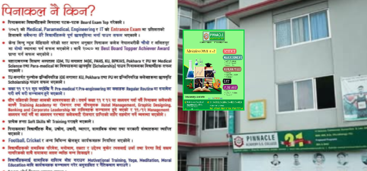 देशकै उत्कृष्ट पिनाकल कलेजमा प्री-मेडिकलदेखि प्री-इन्जिनियरिङसम्म-एकैठाउँमा सबै सुविधा