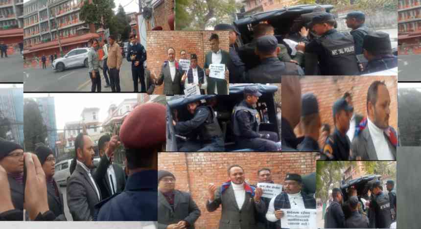 कार्यकारी प्रमुख र सर्वपक्षीय सरकारको मागसहित सिंहदरबार गेटमा अल जेन नेपाल मुभमेन्टको प्रदर्शन,हरिकृष्ण गजुरेलसहित चार अभियन्ता पक्राउ