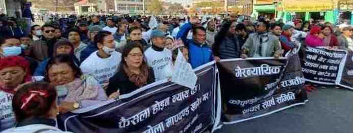 अहिले उक्त खोला मापदण्ड खारेजीको माग गर्दै गैरन्यायिक सडक तथा खोला मापदण्ड पीडित संघर्ष समिति सडकमा आएको हो ।
