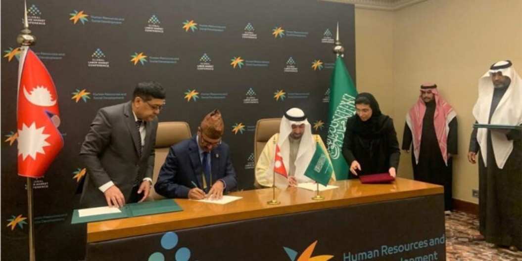 सम्झौतामा नेपालका तर्फबाट श्रम, रोजगार तथा सामाजिक सुरक्षामन्त्री राजेन्द्र सिंह भण्डारी र साउदी अरब सरकारका तर्फबाट मानव संसाधन तथा सामाजिक विकास मन्त्री अहमद बिन सुलेमान अलराजीले हस्ताक्षर गरेका हुन् ।