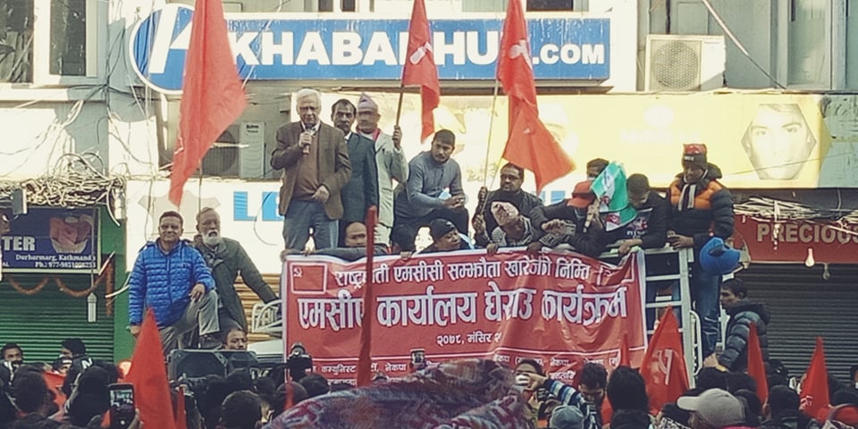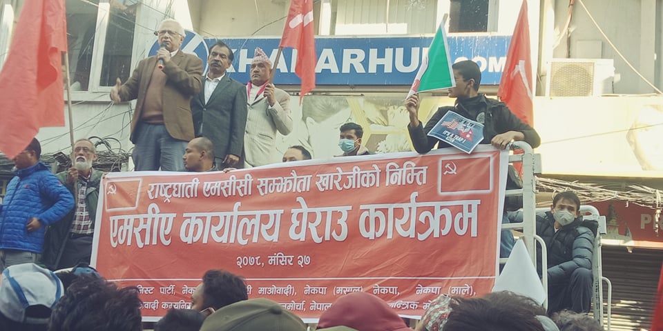 क्रान्तिकारी माओवादीसहितका विभिन्न राजनितिक दल तथा संगठनहरूले गरे एमसीसीको कार्यालय घेराउ
