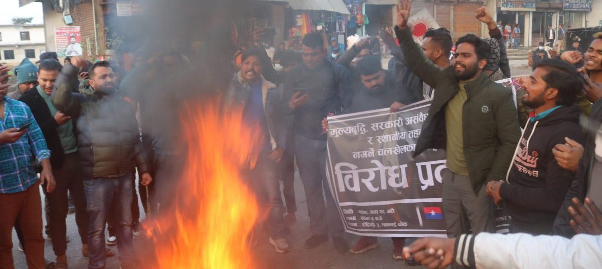 काठमाडौं । एमाले निकट राष्ट्रिय युवा संघ, नेपाल रोहिणी गाउँपालिका कमिटी, रुपन्देहीले शनिबार सांझ धकधईमा विरोध प्रदर्शन गरेको छ । मूल्यवृद्धि र स्थानीय तहको निर्वाचन नगर्ने चलखेलविरुद्ध प्रदर्शन गरिएको युवा संघले जनाएको छ ।