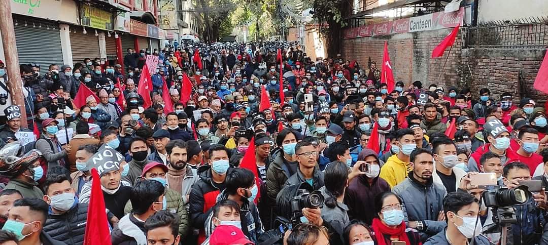 एमसीसी सम्झौता खारेजीको माग गर्दै क्रान्तिकारी माओवादीसहितका २२ दलीय मोर्चाले संसद भवन घेराउ गर्दै