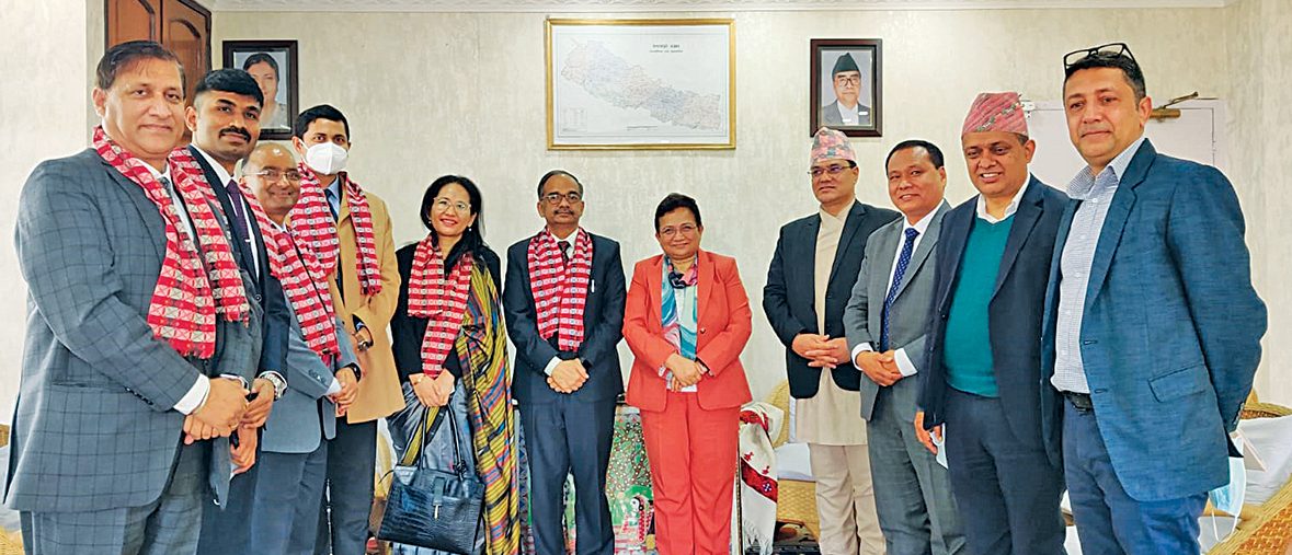 ऊर्जा, जलस्रोत तथा सिँचाइमन्त्री पम्फा भुसालसँग भारत सरकारका ऊर्जासचिव आलोक कुमारसहितको प्रतिनिधिमण्डलले बिहीबार शिष्टाचार भेट गरेको छ। भेटवार्तामा समग्र ऊर्जाको विकास, व्यापार र आपसी हितका विविध विषयमा छलफल भएको मन्त्रालयले जनाएको छ।