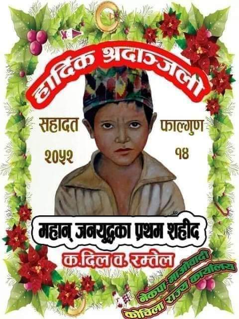प्रेम प्रसाद कडेल-चितवन। नेपाल कम्युनिष्ट पार्टी (क्रान्तिकारी माओवादी) र नेकपा (बहुमत) चितवनको आयोजनामा माडी नगरपालिकाको शहिद चोक वसन्तपुरमा महान जनयुद्धको प्रथम शहीद दिल बहादुर रम्तेलको स्मृति दिवस मनाइयो।
